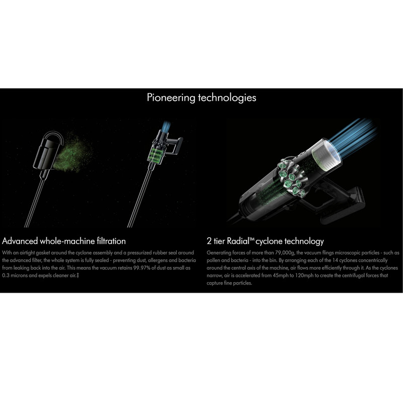 | سایر توضیحات | جاروعصایی Dyson V10 Absolute مجهز به فناوری Root Cyclone با ایجاد نیروهایی تا 100,000G برای جذب مؤثر گردوغبار و زباله / دارای فیلتراسیون چندمرحلهای پیشرفته با توانایی جذب 99.99٪ ذرات میکروسکوپی و آلرژنها تا اندازه 0.3 میکرون / کمک به تصفیه هوای محیط و بازگرداندن هوای پاکتر به خانه یا محل کار / بهرهمند از رشتههای فیبر کربن ضد الکتریسیته ساکن برای جمعآوری بهتر گردوغبار از کفهای سخت مانند سرامیک، سنگ و پارکت / دارای سه حالت تنظیم مکش برای ایجاد تعادل بین قدرت مکش و زمان استفاده / مجهز به شانه ضد گره (Anti‑Tangle) جهت پاکسازی خودکار مو از برس / سطل زباله با تخلیه و نظافت آسان / فیلتر و برس غلتکی قابل شستشو برای حفظ بهداشت و عملکرد بهتر / مجهز به موتور دیجیتال Dyson Hyperdymium با سرعت چرخش تا 100,000 دور در دقیقه، سبک و بسیار قدرتمند / دارای Motorbar دیجیتال با پرههای ضدگیر مو برای جمعآوری مؤثر گردوغبار، مو و زباله / مناسب برای کفپوش سخت، فرش کمپرز، فرش پرپرز و کفپوش چوبی / مجهز به فیلتر خروجی HEPA با توان ضدعفونی و جذب تا 99.999٪ میکروبها / گزینهای ایدهآل برای افراد مبتلا به حساسیت و آلرژی |
