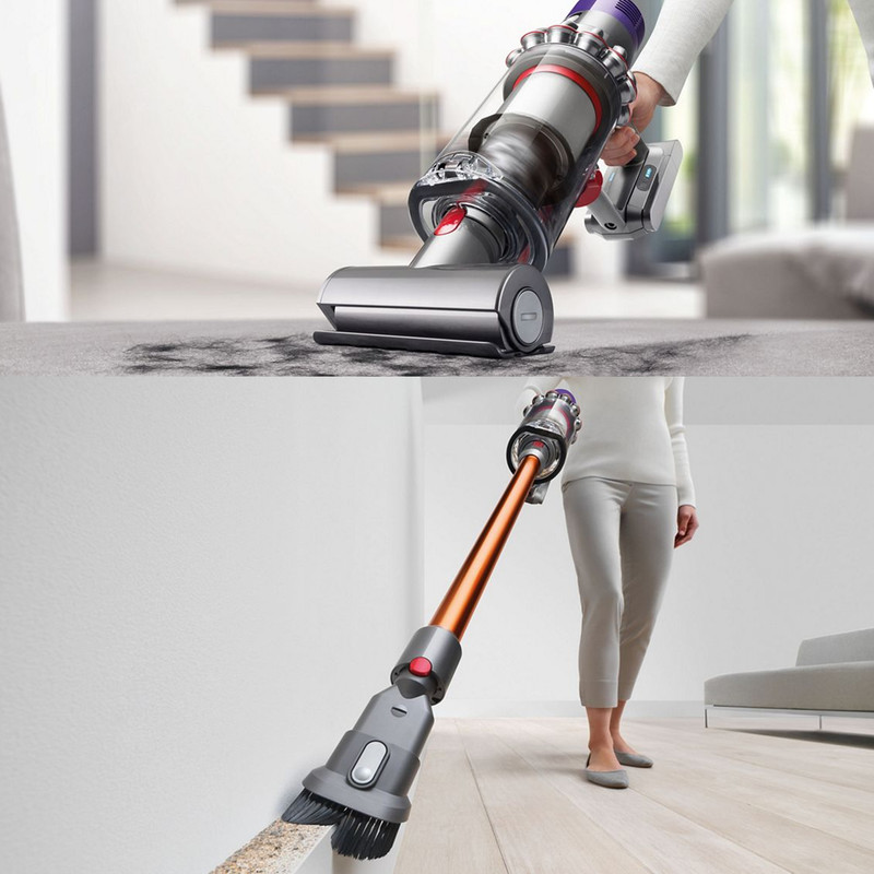 جارو شارژی دایسون مدل V10 یک انتخاب بینظیر برای کسانی است که به دنبال نظافتی حرفهای و بینقص هستند. این دستگاه با طراحی مدرن و سبک، بهصورت بیسیم عرضه شده و با باتری لیتیوم-یونی خود تا 35 دقیقه مکش قدرتمند و بدون افت کیفیت ارائه میدهد. فیلتر دیسکی این جارو قابلیت جذب ذرات ریز و گرد و غبار را دارد و برای کفهای سخت و فرش ایدهآل است.این مدل مجهز به دو سری نظافتی Motorbar™ و Soft roller است که با استفاده از فیبرهای کربنی ضد الکتریسیته ساکن و نایلون نرم، بهترین عملکرد را روی انواع سطوح ارائه میدهند. همچنین، ابزار ترکیبی 2 در 1 و نازل شکاف، تمیز کردن گوشهها و فضاهای تنگ را بسیار آسان میکنند.داک دیواری این دستگاه نهتنها به شارژ آسان کمک میکند، بلکه تمام لوازم جانبی را مرتب و آماده به کار نگه میدارد. با نویز 82 دسیبل، این جارو گزینهای کمصدا و کارآمد برای استفاده روزانه در خانه است.