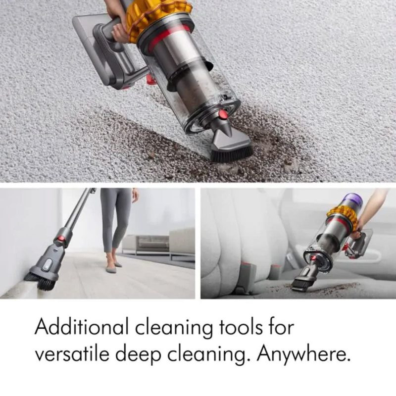 جارو شارژی دایسون DYSON V15 Cordless Vacuum Cleaner برند دایسون یکی از پرچمداران تولید لوازم برقی که در چند سال گذشته محبوبیت زیادی نسبت به سالیان گذشته پیدا کرده است آن هم به دلیل تولید لوازم برقی خاص و کیفیت بالای محصولات می باشد. یکی از جاروشارژی های محبوب و باکیفیت این کمپانی بزرگ جارو شارژی مدل V15 است. این جاروی پرقدرت که جایگزین مناسبی برای جاروی برقی نیز است و با وزن کمتر از 3 کیلوگرم و طراحی ارگونومیک دست شما را برای نظافتی بی نقص باز میگذارد ، همچنین شما میتوانید از این جارو به دو صورت کوتاه و عصایی با سری های مختلف استفاده کنید. جنس بدنه ی این جارو از پلاستیک سبک و مقاوم است و مخزن گرد و غبار آن 540 میلی لیتر ظرفیت دارد که به راحتی نیز تخلیه میشود. همچنین این دستگاه دارای فیلتر هپا نیز می باشد بنابراین برای افراد دارای آلرژی مشکلی ایجاد نمیکند و گرد و غباری در فضا پخش نمیشود . صدای این دستگاه بسیار کم است و تنها 82 دسیبل می باشد که نسبت به مدل های مشابه صدایی کم محسوب میشود. از این جاروی زیبا و پرقدرت میتوانید برای انواع کف ، پرده و حتی داخل اتومبیل استفاده کنید و از تمیزی محیط خود لذت ببرید. از ویژگی های خاص این دستگاه مجهز بودن به یک لیزر است که اجازه نمیدهد گرد و غباری از چشم شما نادیده بماند. به لطف این لیزر شما ریزترین و میکروسکوپی ترین ذرات را خواهید دید و اگر حس کند ذره ای به جای مانده به طور اتومات مکش را افزایش میدهد. ال سی دی این دستگاه علاوه بر زیبایی که به دستگاه بخشیده است اطلاعاتی مثل میزان شارژ و اندازه ی ذرات و گرد و غبار و … را به شما نشان می دهد. این دستگاه قادر است با یک بار شارژ تا 60 دقیقه کار کند و محیطی تمیز در اختیار شما قرار دهد. سری این دستگاه نیز در برابر موها عملکردی عالی دارد و اجازه نمیدهد که موهای گیر کرده مانع کار دستگاه شود. این دستگاه دارای براکت دیواری نیز می باشد.
