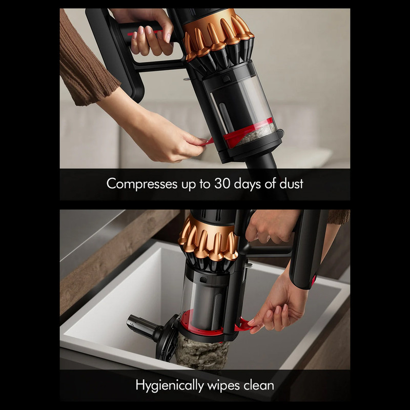 جاروبرقی بیسیم Dyson V16s Piston Animal submarine نسل جدیدی از تمیزی هوشمند است؛ دستگاهی ۳ در ۱ که همزمان جارو میکشد، تی میکشد و به جاروشارژی دستی تبدیل میشود و جدیدترین محصول سال 2025 دایسون است. موتور دیجیتال قدرتمند Hyperdymium™ با توان ۹۰۰ وات، مکشی برابر با ۳۱۵ Air Watts ایجاد میکند که در تمام مدت بدون افت قدرت باقی میماند. باتری لیتیومی ۷ سلولی آن تا ۷۰ دقیقه کار مداوم دارد و با باتریهای کلیکدار قابل تعویض، زمان استفاده را میتوان افزایش داد. سیستم پیشرفتهی Dynamic Cyclones گردوغبار را از هوا جدا کرده و در حالت Boost Mode بهصورت خودکار مکش بیشتری ایجاد میکند. سر هوشمند All Floor Cones™ Sense با دو برس مخروطی چرخان، موهای بلند تا ۶۵ سانتیمتر را جدا کرده و مستقیماً به داخل مخزن میفرستد. این سری بسته به نوع سطح، قدرت و سرعت برس را تنظیم میکند؛ برس نایلونی برای فرش و برس نرم برای کفهای سخت. همچنین پرتو نوری مرکزی گردوغبار میکروسکوپی را آشکار میسازد تا هیچ ذرهای پنهان نماند. فناوری CleanCompaktor™ گردوغبار را فشرده کرده و ظرفیت مخزن را تا ۳۰ روز افزایش میدهد. هنگام تخلیه، داخل مخزن نیز بهصورت بهداشتی تمیز میشود و هیچ موی گرهخوردهای باقی نمیماند. سری شویندهی Submarine™ 2.0 نیز با کنترل دقیق میزان رطوبت، لکهها و ریختگیها را پاک کرده و در حالت Max Mode حتی سرسختترین لکهها را از بین میبرد. Dyson V16s با حسگر شمارش گردوغبار تا ۱۵هزار بار در ثانیه، قدرت مکش را بهینه میکند. فیلتر پنجمرحلهای HEPA، ۹۹.۹۹٪ از ذرات تا اندازه ۰.۱ میکرون را جذب کرده و هوایی پاکتر بازمیگرداند. نمایشگر LCD اطلاعات تمیزکاری را در لحظه نمایش میدهد و از طریق اپلیکیشن MyDyson™ بهروزرسانیها و نکات نگهداری را دریافت میکنید. Dyson V16s Piston Animal submarine نمادی از قدرت، دقت و هوشمندی است؛ تجربهای مدرن از تمیزی عمیق و راحتی در خانههای امروزی.