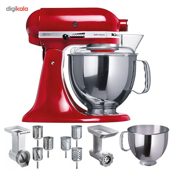 همزن «کیچناید» مدل «5KSM150PSE» از همزنهای پایهدار شرکت کیچناید است که علاوه بر کیفیت بالا و همیشگی محصولات این شرکت، ظرفیت بالایی نیز دارد. بدنه این دستگاه تمام فلزی بوده و در رنگهای متنوع و چشمنوازی تولیدشده است که میتواند به محل استفاده زیبایی بیشتری ببخشد. این دستگاه با توان تعریفشدهاش میتواند قابلیتهای یک همزن پایهدار را به بهترین شکل به کار گیرد و نتیجه ایده آل را فراهم کند. سریهای همزن، خمیرزن و ورز دهنده در این دستگاه میتواند کمک شایانی به آشپزها و شیرینی پزها یا علاقهمندان این موارد کند. روی کاسه محافظی قرار میگیرد تا مانع پاشش مواد به بیرون از ظرف شود ولی این تمام قابلیت این دستگاه نیست. متعلقات جانبی دیگری مانند آب مرکبات گیری، چرخگوشت، عصاره گیر، اسپاگتی ساز و ... برای این دستگاه قابل تهیه میباشد تا قدرت و کیفیت دستگاه تنها صرف هم زدن نشود. درواقع این دستگاه یک ماشین آشپزخانه محسوب میشود و با تهیه متعلقات دیگر میتواند کمک بسیار خوبی به مصرفکننده باشد. کیچناید شرکتی معتبر در زمینه تولید و عرضه لوازمخانگی برقی لوکس و باکیفیت است که در سراسر جهان طرفداران و خریداران زیادی دارد.